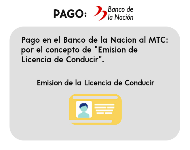 banco de la nación por la emisión de tu licencia de conducir).